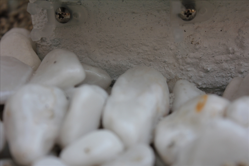 さて、次にチューブライト固定用のクリップを取り付けていきます。クリップはネットで50個1500円。固定にはガレージや框で使ったチューブライト用レールでと考えていましたが、このレールがとてももろくて、すぐに割れ、外には使用できそうになかったために、クリップを選択。 |