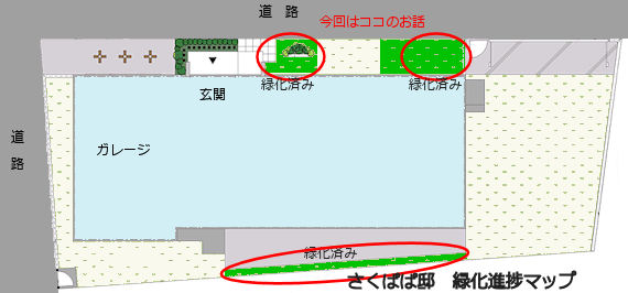 前回芝生貼り4で、緑化進捗マップの緑が少しだけ増えました。ですが、まだまだです。この時期は芝生の成長も旺盛ではないので、今年度中には、終わらなそうな気がしてきました。補助金の工事完了通知の提出期限は今年度中です。