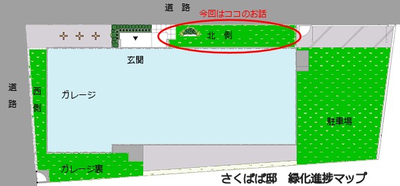 北側は、ときどき芝刈をさぼったせいで、 |