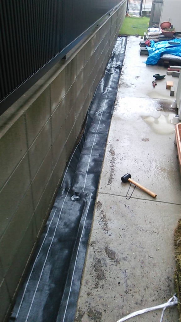 雑草防止に”防草シート”を敷いて、 |