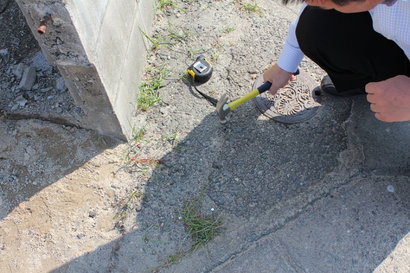 | こちらは、北西側の境界のポイント。 道路との境界になります。 |