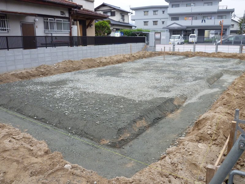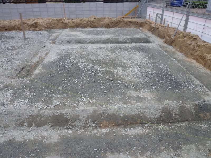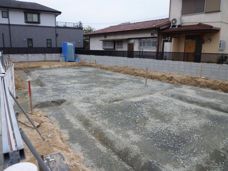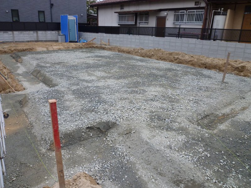 今日は地中梁の部分が掘削されており、砂利がまかれています。