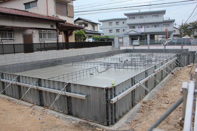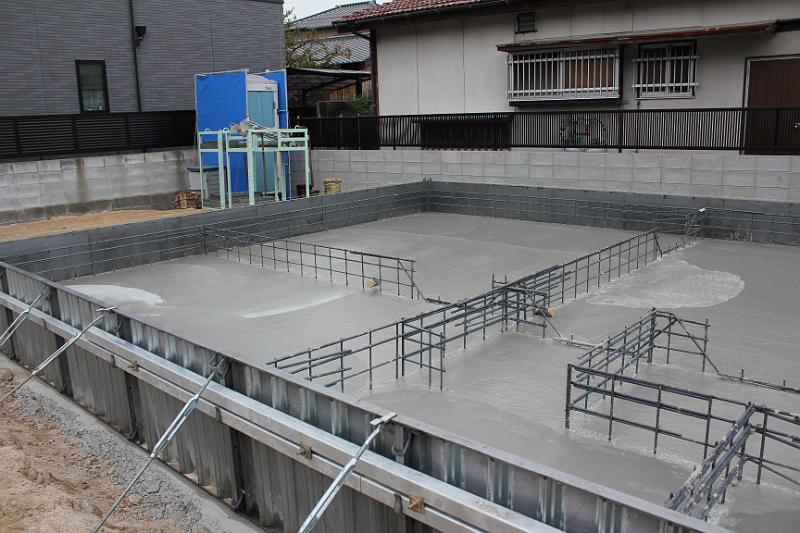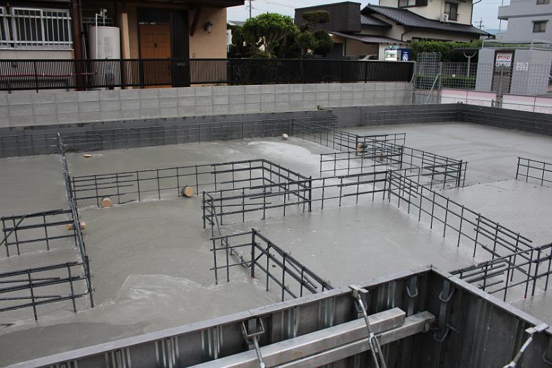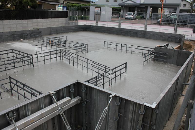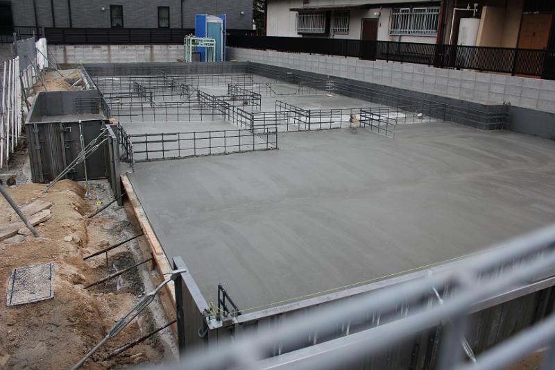 くもり、今日はベタ基礎部分のコンクリ打ちです。(また、さくまま偵察) キレイに仕上がっています。