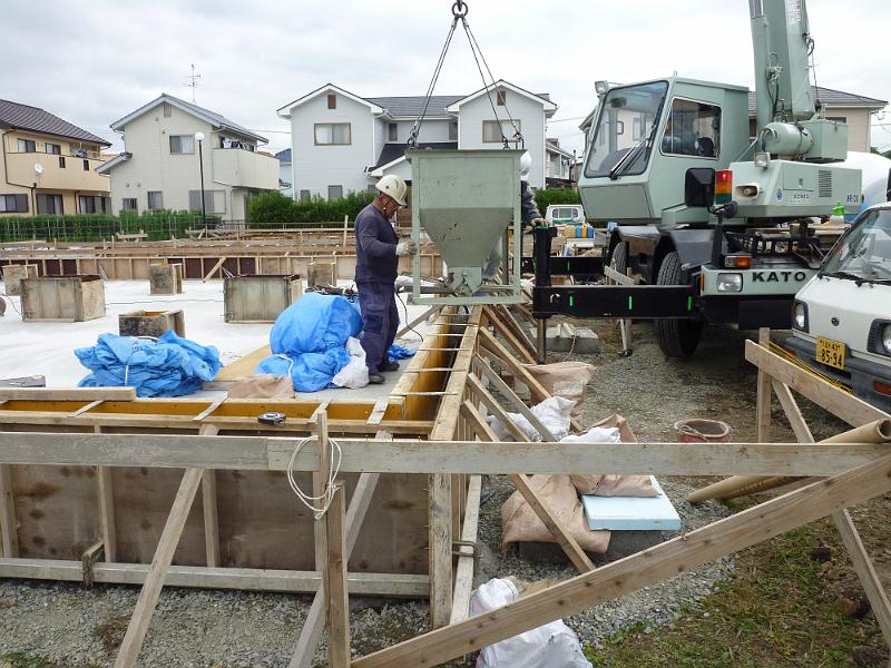 コンクリを流しています。枠は木製なんですね。 |