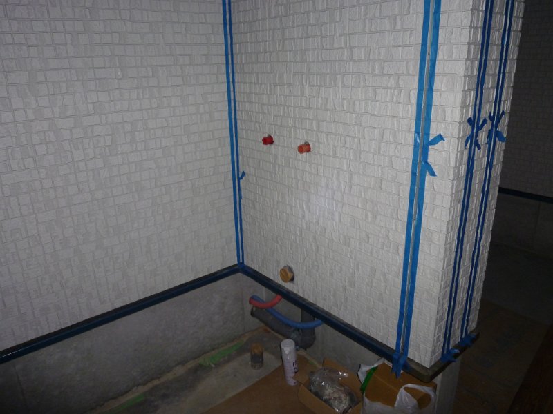 得意の施主支給で、洗濯機の上の棚を付けてもらうことなっていたのですが、支給するのをすっかり忘れてました。ので、この日会社帰りにホームセンターによって現場に向かいました。