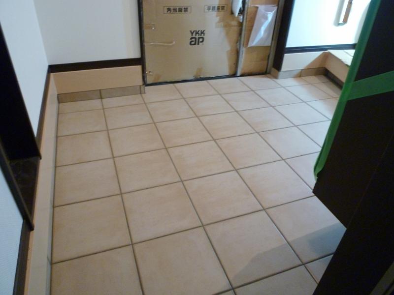 上がり框(かまち)下は、タイルを途中で止めてもらいました。作戦があるのです。後日公開! |