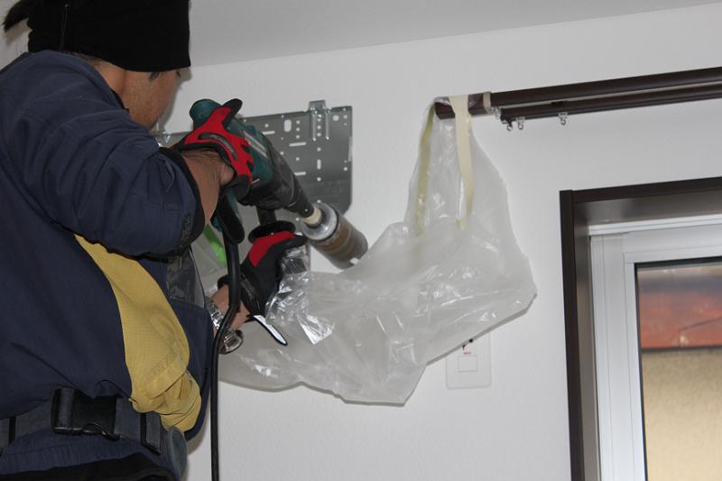 まずは、エアコン取り付け。 |