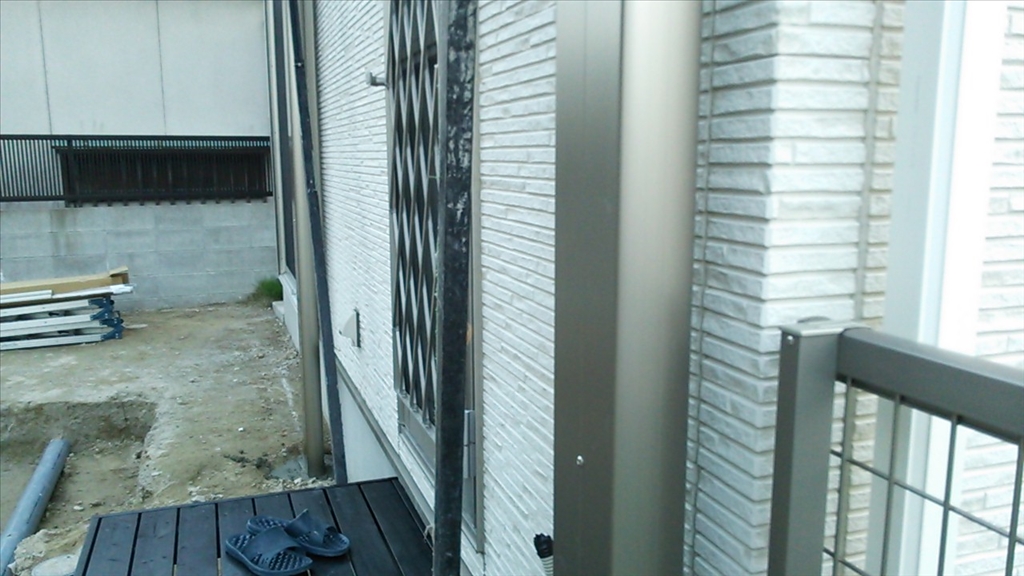 第一次外構工事で付けたオーバードアはLIXIL(TOEX)のもので、色が「シャイングレー」。この色に三協アルミの「アーバングレー」がマッチするかが不安でしたが、まあ大丈夫でした。 |