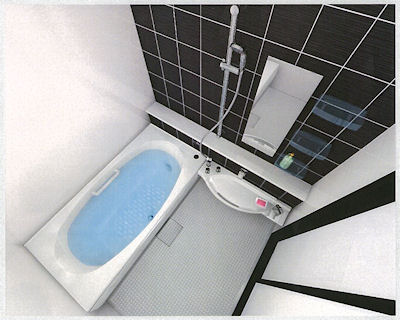 色はこんな感じ、ユニットバスっぽくないようにと、壁面1面だけタイルを選択。
